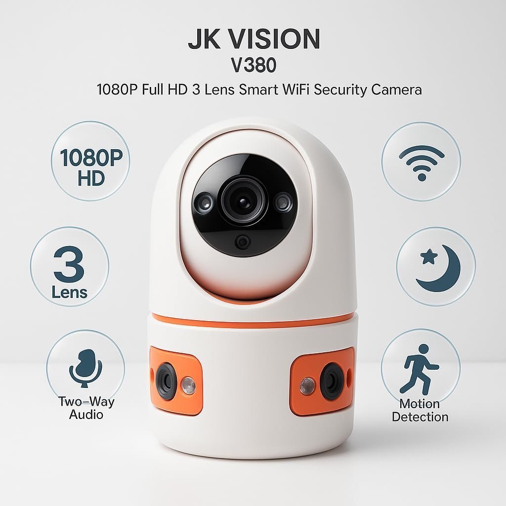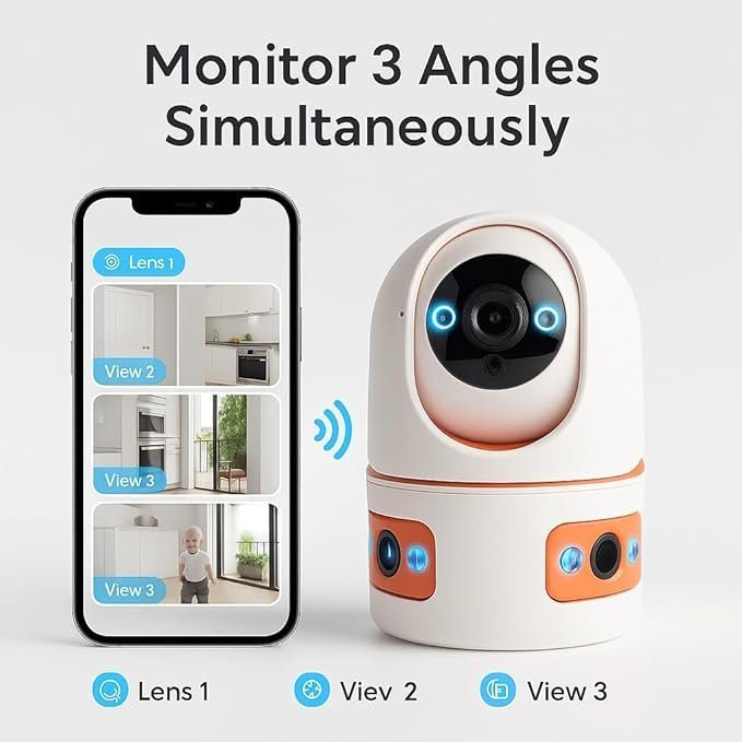 The Dynamic Bazar 3-Lens Smart WiFi Security Camera offers reliable full-coverage surveillance for your home or office. Equipped with 1080P Full HD resolution, this camera gives you a crisp live view on your smartphone at all times. Its 360° pan & tilt capability ensures no blind spots, while advanced night vision and motion detection keep you secure round-the-clock.