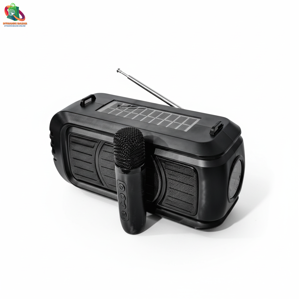 Music + Mic + FM + Solar charging — everything in a single portable device.