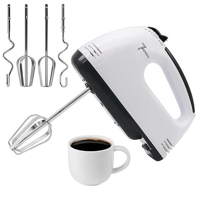 High-performance 260W electric hand mixer with 7 speed settings and versatile stainless steel attachments for baking and everyday kitchen mixing.